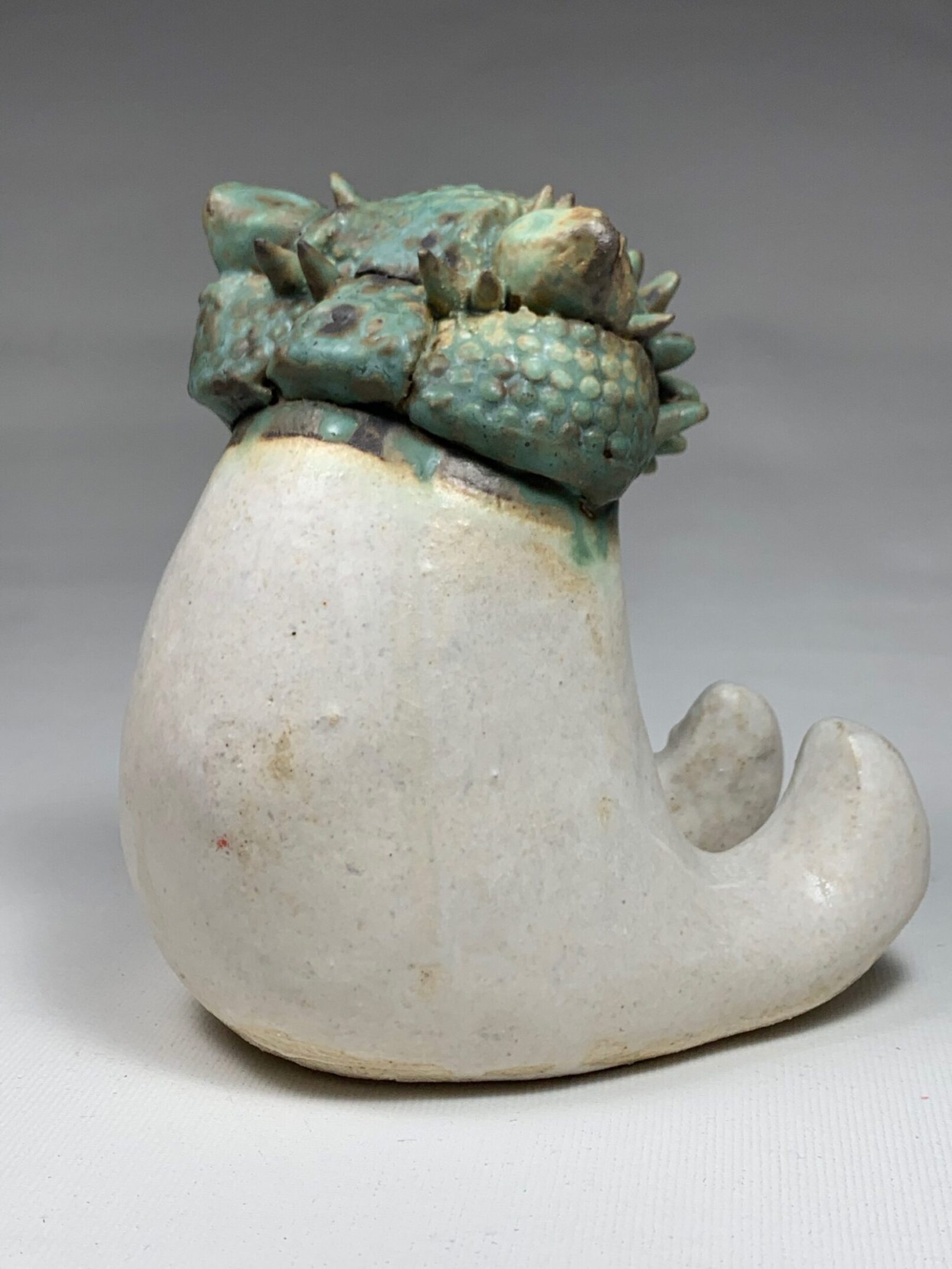 Técnica: stoneware. Construcción manual. Esmalte de formulación propia. Bicocción a alta temperatura (1240ºC). Tercer fuego para lustre dorado.